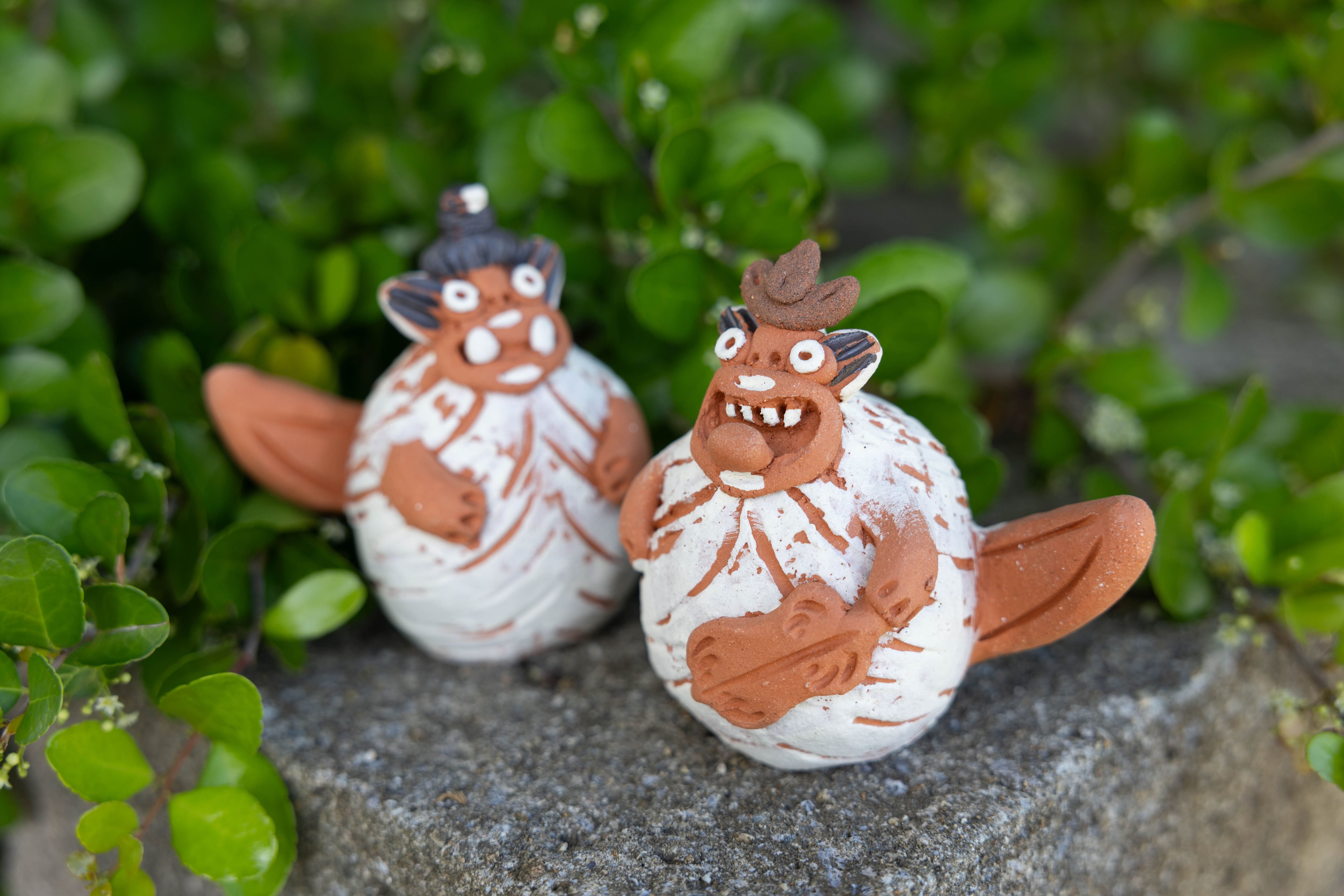 琉球国王の王冠「玉冠(ぎょくかん)」、琉球の伝統的な髪飾り「からじ」を組み合わせたシーサーです。 【 まんまーるシーサーシリーズ 】 まるい形はとっても縁起が良いとされ、始まりも終わりもないそのカタチは「無限??」や「ご縁」を表すとも言われています。 手のひらサイズのまんまーるシーサー、ご自宅や大切な人への贈り物にいかがでしょうか?