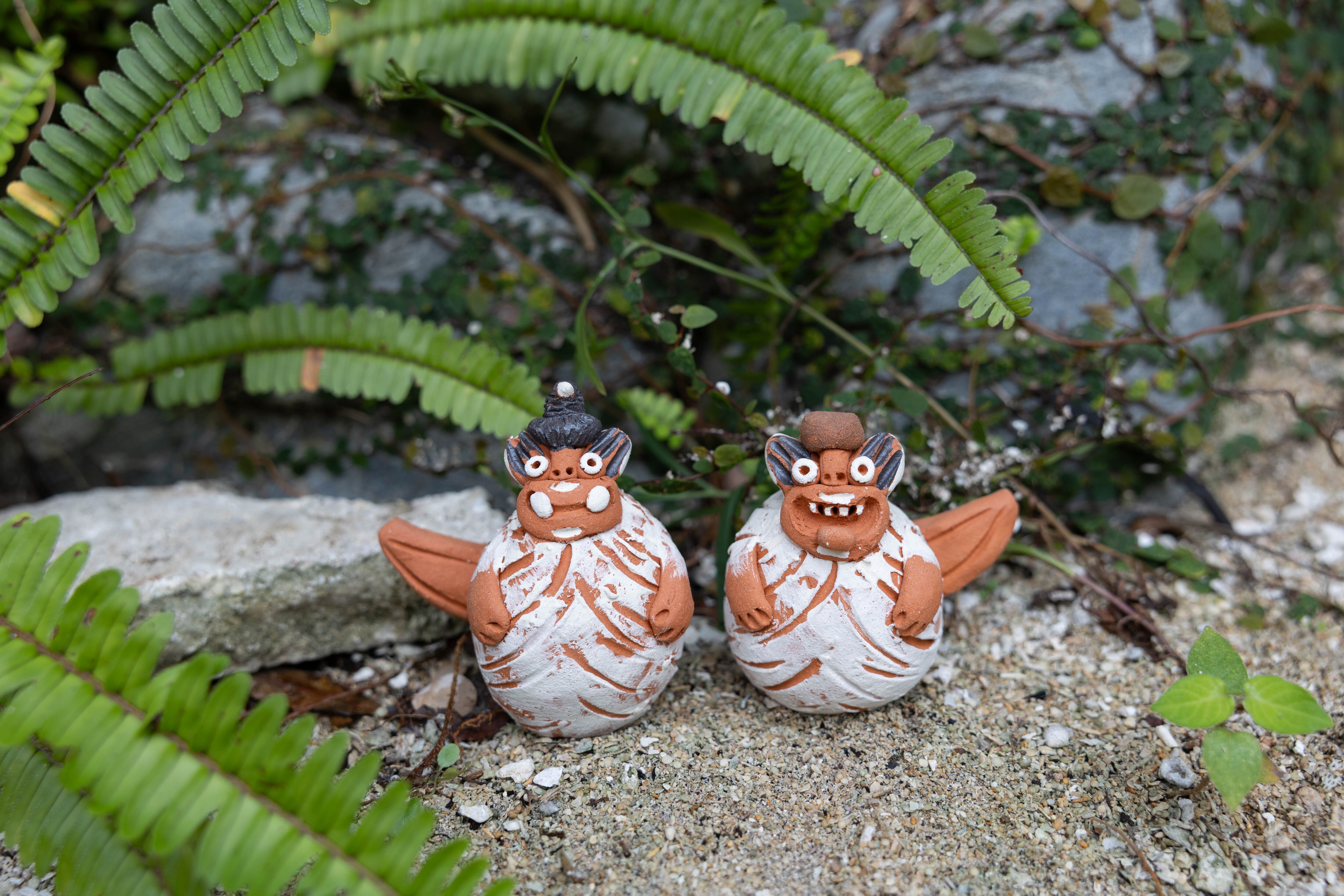ハチマチとかんぷーは、沖縄の祭りや演舞、芸能で使われる伝統的な装いです。 【 まんまーるシーサーシリーズ 】 まるい形はとっても縁起が良いとされ、始まりも終わりもないそのカタチは「無限??」や「ご縁」を表すとも言われています。 手のひらサイズのまんまーるシーサー、ご自宅や大切な人への贈り物にいかがでしょうか?